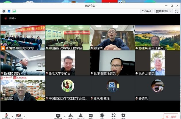 评价委员会由中国科学院何满潮院士担任主任,中国科学院彭建兵院士、中国工程院张偲院士担任副主任,评委会专家有:同济大学日本工程院外籍院士汪发武、绍兴文理学院俄罗斯科学院外籍院士伍法权、青岛海洋科学与技术试点国家实验室刘保华副主任、自然资源部第一海洋研究所李铁刚所长、中国地质调查局青岛海洋地质研究所印萍副所长、中国科学院海洋研究所曾志刚研究员、浙江大学陈家旺教授、中海油研究总院李清平研究员、广州海洋地质调查局吴庐山研究员、上海交通大学徐永福教授。学会秘书长杨晓杰教授主持会议。